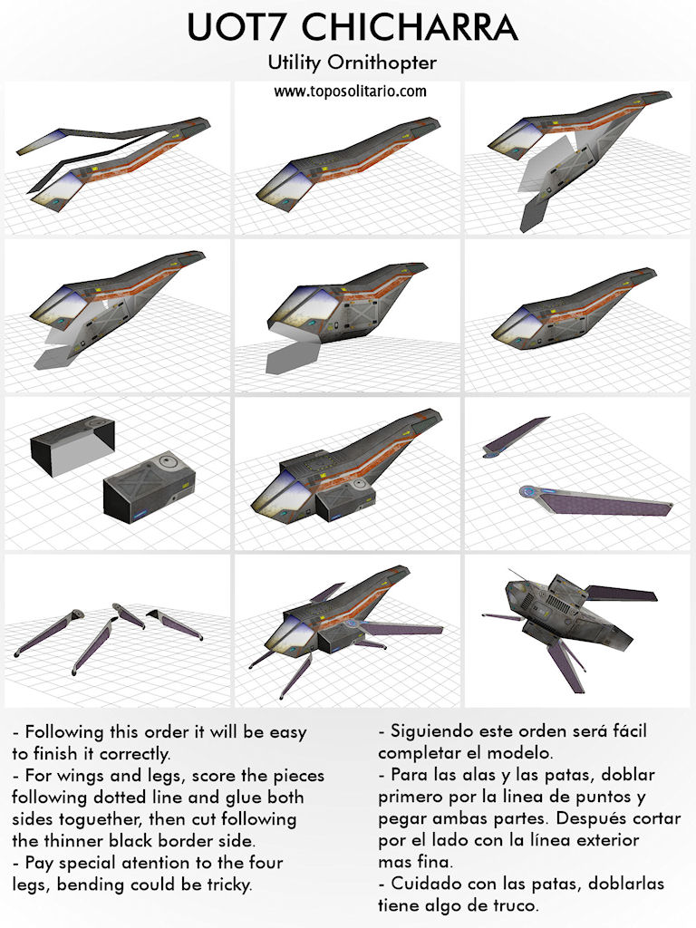 On every age (from Icarus to Leonardo Da Vinci, and until now), mankind always searched for a way to fly like birds, that is flapping. In the near future it'll be like this too, and from all the technological abstractions of tomorrow raises this Ornithopter, the Chicharra (Cicada in english), called so becouse of the grasshopper-on-steroids looking and the peculiar sound of the ultra high frequency vibrating wings going through the ionized air flow used to keep it flying.